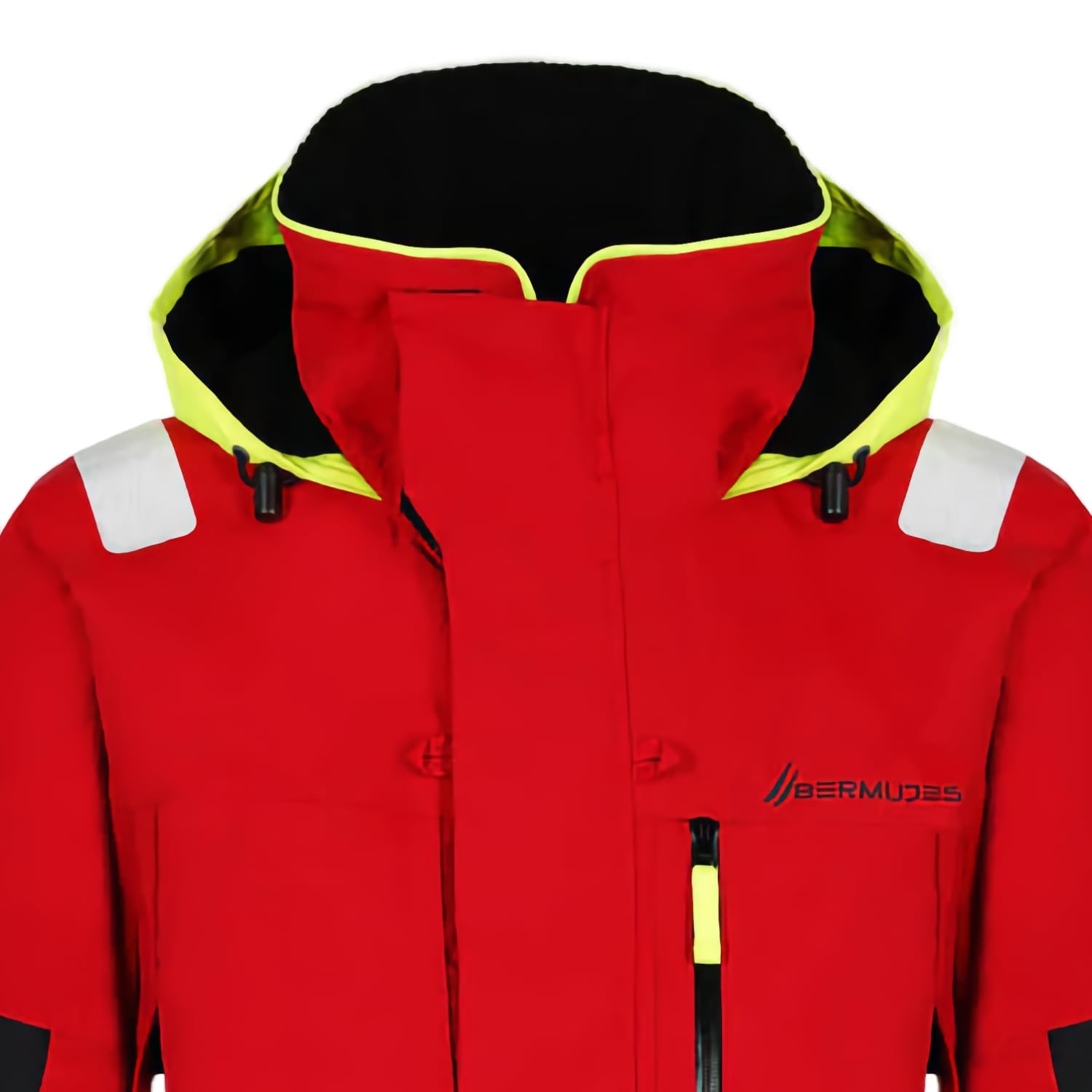 Chaque élément de ce blouson répond à une exigence précise des plaisanciers en zone côtière. L’imperméabilité de la membrane et les coutures étanches limitent les infiltrations pendant les navigations humides. Le tissu respirant combiné à la doublure mesh permet d’évacuer l’humidité lors des manœuvres. Le col doublé polaire isole efficacement le cou, tandis que la capuche attenante protège des projections d’eau. Les renforts placés sur les zones exposées au frottement prolongent la durée de vie du vêtement. Les bandes rétro réfléchissantes améliorent la visibilité par faible luminosité. Les poches zippées offrent un rangement sécurisé et accessible même en mer agitée.