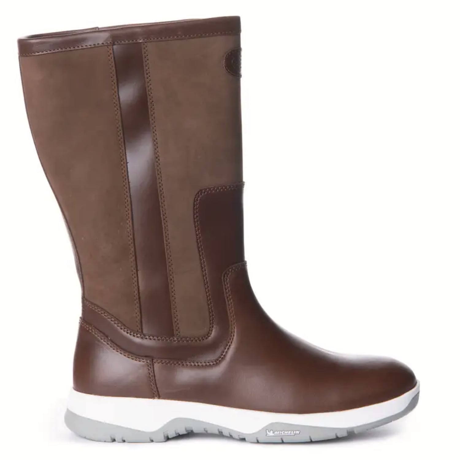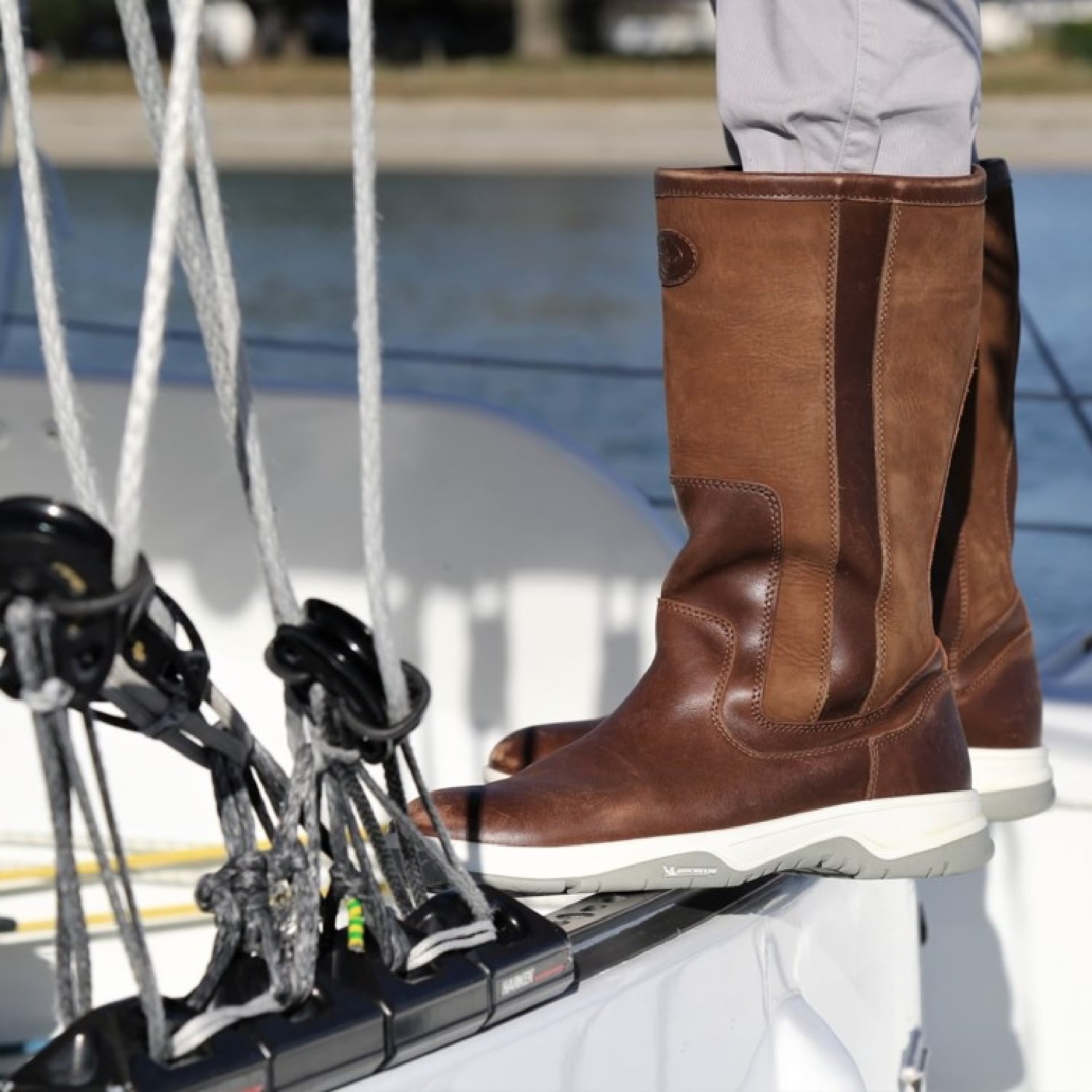 Les bottes Pontus sont conçues pour un usage nautique régulier. Elles associent un cuir pleine fleur et du nubuck, choisis pour leur résistance à l’eau et au sel. La doublure repose sur une construction quatre couches intégrant une membrane Sympatex contenant du plastique recyclé issu des océans. Cette structure vise à maintenir les pieds au sec tout en conservant une bonne respirabilité. La botte intègre une semelle intérieure sculptée et amovible, prévue pour sécher rapidement. L’élasticité intérieure facilite l’enfilage sans modifier le maintien du pied. La semelle extérieure, développée en partenariat avec Michelin, est conçue pour assurer une adhérence stable sur les ponts de bateau.