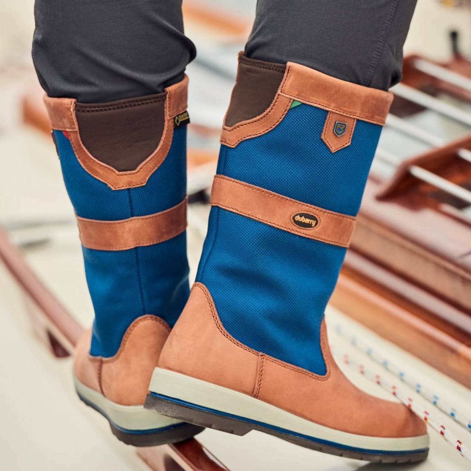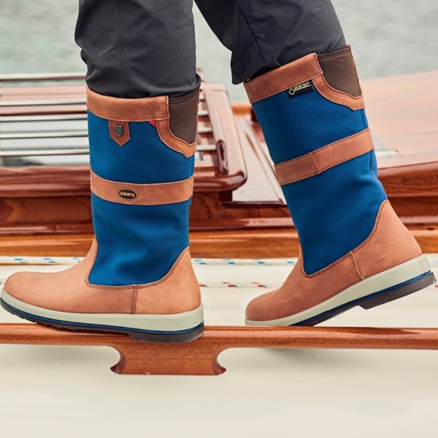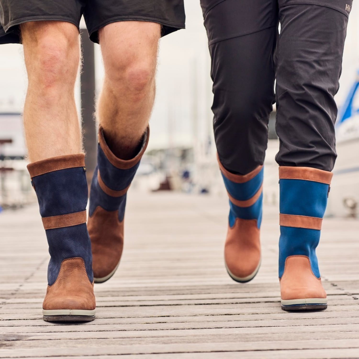 Ces bottes sont pensées pour un usage régulier en milieu marin. Le cuir traité et la membrane imperméable permettent de garder les pieds au sec par temps humide. La respirabilité contribue au confort lors de longues périodes debout ou en mouvement. La semelle antidérapante améliore la stabilité sur le pont, même mouillé. Le design bleu et marron, complété par des écussons en cuivre et des logos en caoutchouc résistants à la corrosion, reste discret et adapté à une utilisation nautique comme à terre après la navigation.