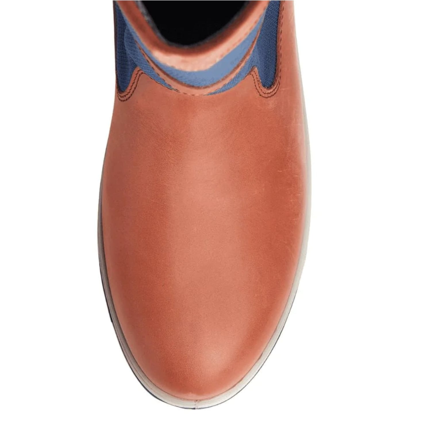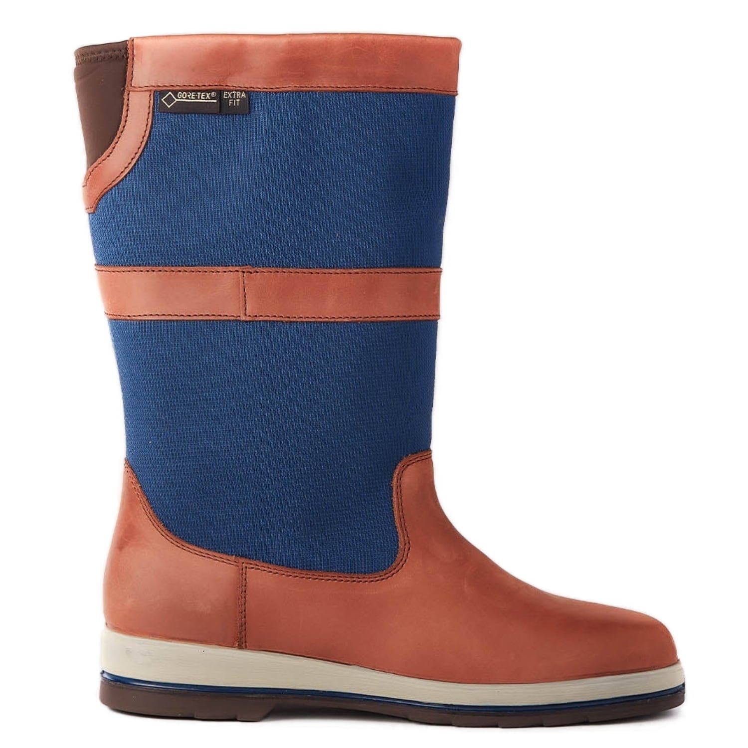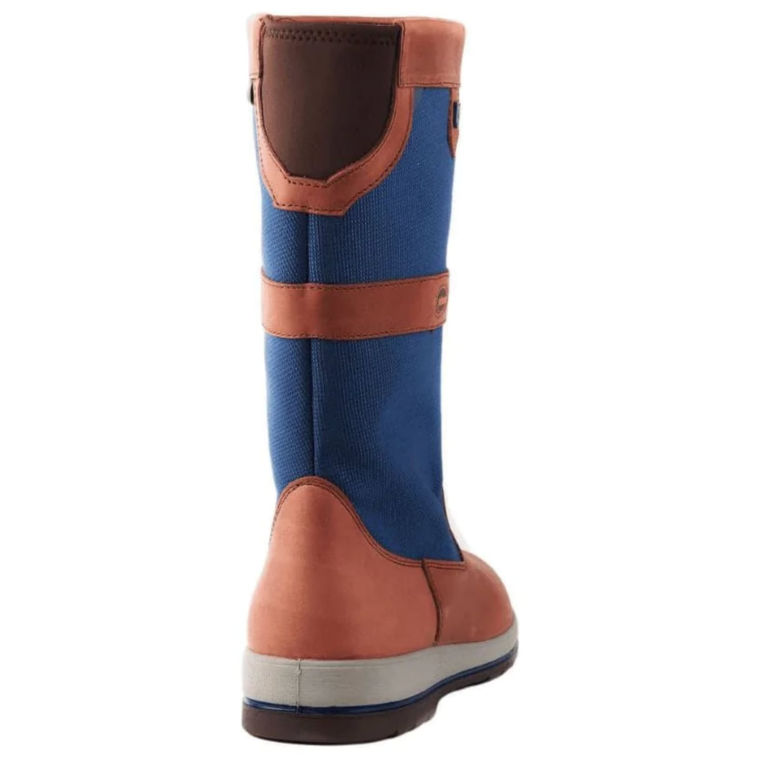 Ces bottes sont pensées pour un usage régulier en milieu marin. Le cuir traité et la membrane imperméable permettent de garder les pieds au sec par temps humide. La respirabilité contribue au confort lors de longues périodes debout ou en mouvement. La semelle antidérapante améliore la stabilité sur le pont, même mouillé. Le design bleu et marron, complété par des écussons en cuivre et des logos en caoutchouc résistants à la corrosion, reste discret et adapté à une utilisation nautique comme à terre après la navigation.