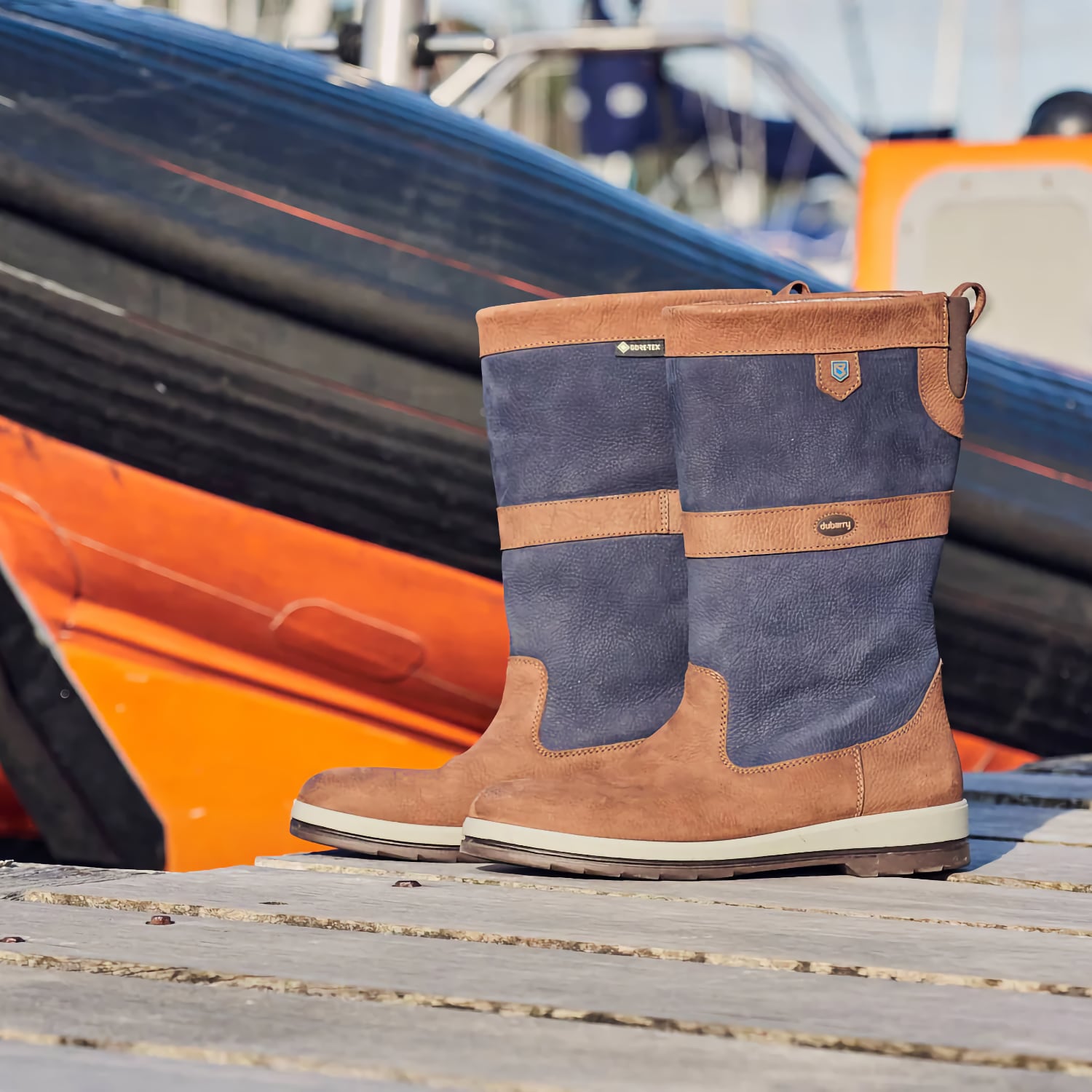 Les bottes Ultima Extra Fit Gore Tex conçues par Dubarry sont prévues pour un usage en environnement marin. Elles sont fabriquées en cuir de haute qualité, traité contre l’eau de mer, et intègrent une membrane Gore Tex assurant l’imperméabilité tout en laissant le pied respirer. La conception Extra Fit repose sur un cou de pied plus large pour faciliter l’enfilage. Un empiècement en lycra permet une adaptation à différentes morphologies de mollet. La semelle extérieure NonSlip NonMarking est conçue pour offrir une accroche fiable sur surfaces humides, notamment sur les pontons et les ponts de bateau. L’ensemble vise à maintenir les pieds au sec et stables lors des navigations par temps humide ou froid.