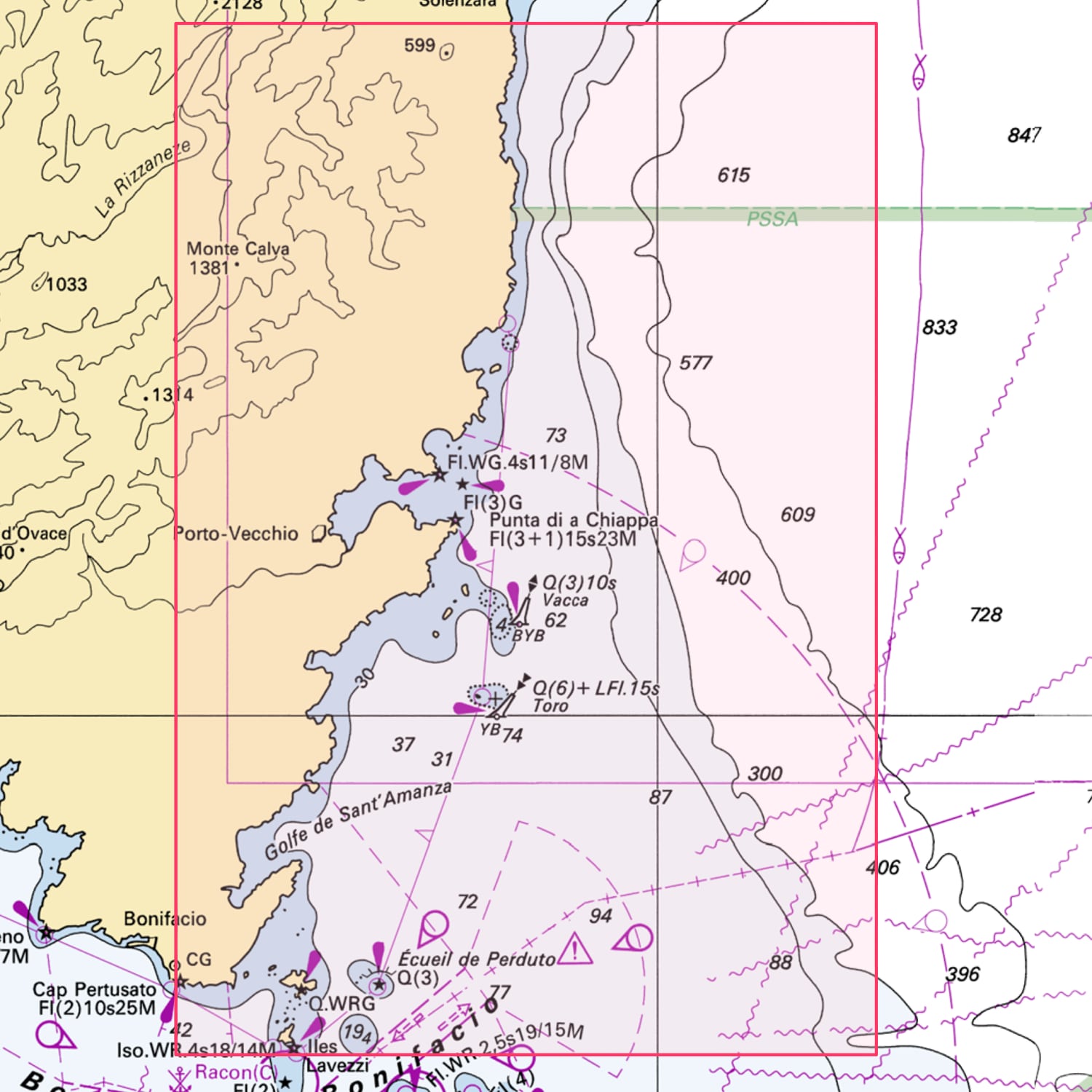 La carte marine Shom 6929L couvre les abords de Porto Vecchio, de l’anse de Favone jusqu’aux îles Lavezzi. Elle inclut le golfe de Porto Vecchio, le golfe de Pinarellu et le golfe de Sant Amanza. Cette carte officielle du Service hydrographique et océanographique de la marine est à l’échelle 1:50 000. Les profondeurs sont exprimées en mètres. Le format plié A4, 21 x 29,7 cm, facilite le rangement à bord. Une fois dépliée, la carte mesure environ 84 x 119 cm. Elle présente les informations classiques de navigation, sondes, balisage, phares, amers, accès portuaires et dangers. Les données sont conformes au système géodésique WGS 84 et à la réglementation SOLAS. Le support est un papier chargé de latex, conçu pour résister à l’humidité, aux embruns et au pliage, tout en permettant l’écriture et l’effacement des annotations de navigation.