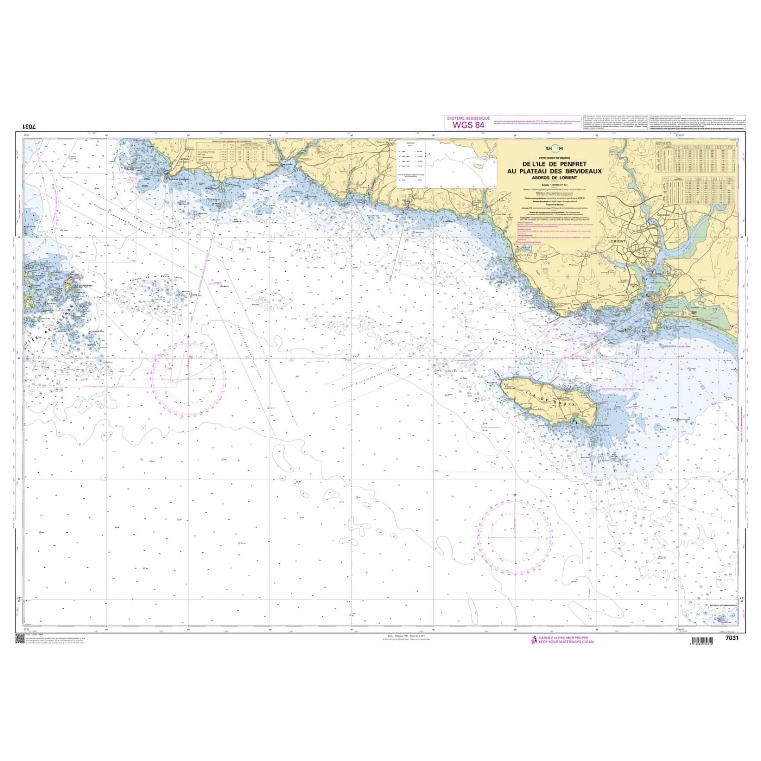 La carte marine Shom 7031L couvre la zone comprise entre l’île de Penfret et le Plateau des Birvideaux, incluant les abords de Lorient. Elle est éditée par le Service hydrographique et océanographique de la Marine (Shom), organisme officiel rattaché au ministère de la Défense. Cette carte est disponible pliée au format A4 (21 x 29,7 cm) et dépliée au format A0 (84,1 x 118,9 cm). Avec une échelle de 1:50 000, elle offre un niveau de détail adapté à la navigation côtière et aux approches portuaires. Le support papier bénéficie d’un traitement au latex, améliorant sa résistance aux projections d’eau et à l’humidité, tout en préservant la possibilité d’y reporter et d’effacer les routes et points de navigation. Conforme aux normes SOLAS (Safety of Life at Sea), elle repose sur le système géodésique WGS84 et compile des données officielles : profondeurs, balisages, phares, épaves, câbles sous-marins et infrastructures portuaires. Elle est tenue à jour quotidiennement et imprimée à la demande pour intégrer les corrections les plus récentes.