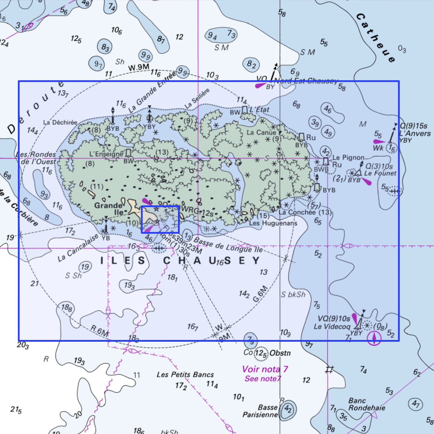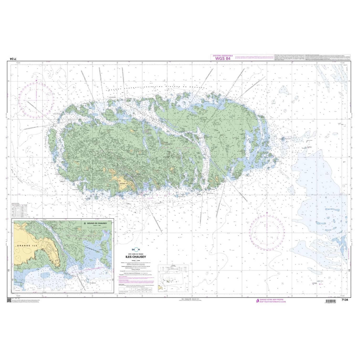 La carte marine Shom 7134L couvre la zone de la Manche autour des Îles Chausey. Elle est éditée par le Service hydrographique et océanographique de la Marine (Shom), organisme officiel français rattaché au ministère de la Défense. Cette carte pliée au format A4 (21 x 29,7 cm) se déploie en A0 (84,1 x 118,9 cm). Son échelle de 1:15 000 offre une grande précision pour la navigation côtière, les approches portuaires et la navigation dans les chenaux. Imprimée sur un papier renforcé au latex, elle résiste à l’humidité et aux embruns, tout en permettant le report et l’effacement des tracés de navigation. Conforme aux normes SOLAS (Safety of Life at Sea) et basée sur le système WGS84, la carte intègre des données officielles du Shom : bathymétrie, balisage, phares, épaves, câbles sous-marins et infrastructures portuaires. Elle est mise à jour quotidiennement et imprimée à la demande afin d’inclure les corrections les plus récentes.