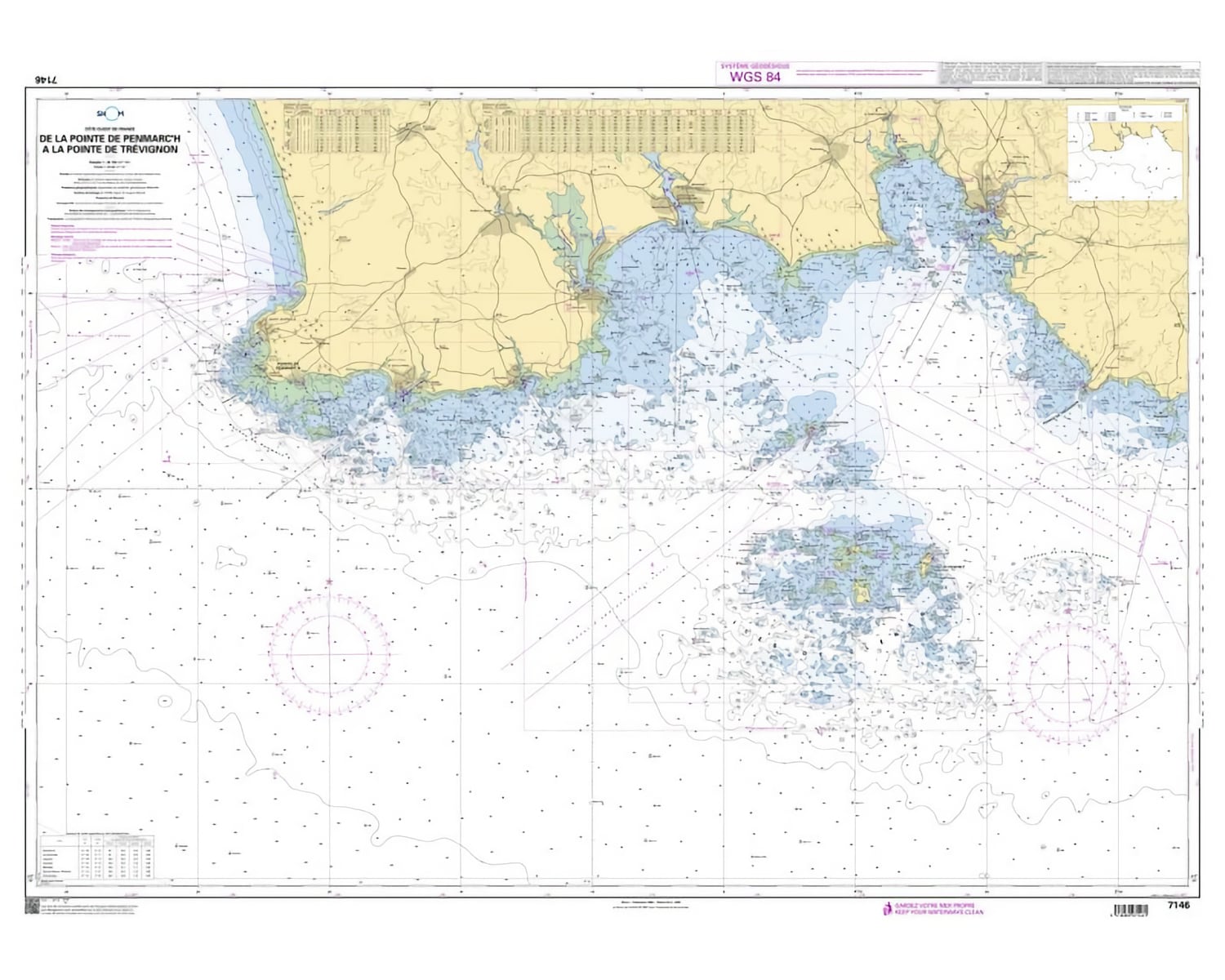 La carte marine officielle SHOM 7146L – De la Pointe de Penmarc’h à la Pointe de Trévignon est une référence incontournable pour tout navigateur. Conçue par le Service hydrographique et océanographique de la marine (SHOM), elle couvre une zone stratégique allant de Penmarc’h à Trévignon, incluant Le Guilvinec, Loctudy, Bénodet, Concarneau, Port-la-Forêt et l’archipel des Glénan. Son échelle 1:49 700 permet une lecture claire et précise, indispensable pour planifier et sécuriser sa navigation côtière. Imprimée sur papier robuste chargé en latex, elle offre une résistance accrue à l’humidité, aux embruns et aux pliages répétés, tout en préservant une excellente qualité d’écriture pour le report de routes et points GPS. Conforme aux normes internationales (SOLAS), cette carte à jour garantit aux plaisanciers comme aux professionnels la fiabilité des données officielles françaises.