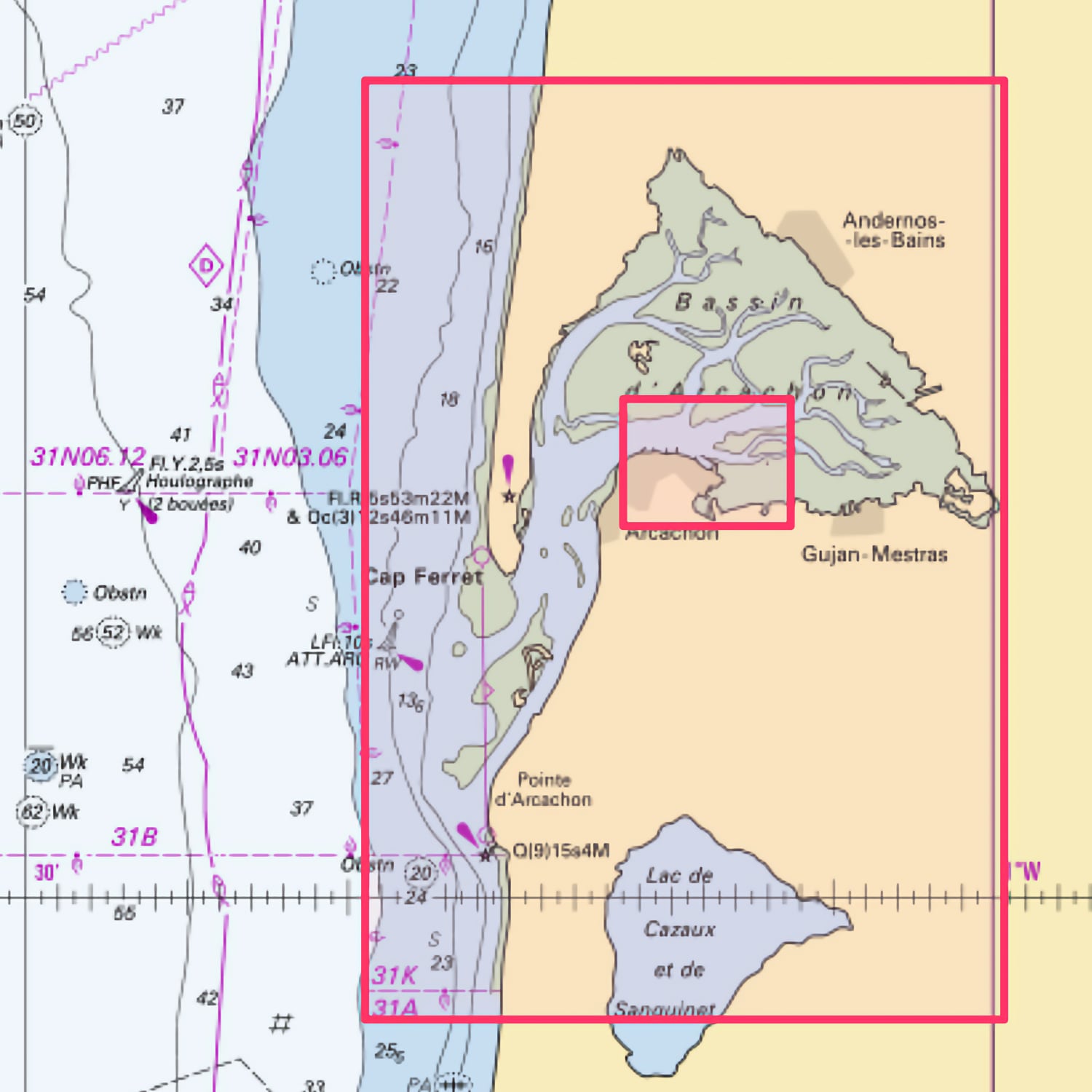 La carte marine Shom 7428L couvre la zone de l’océan Atlantique correspondant au Bassin d’Arcachon. Elle est éditée par le Service hydrographique et océanographique de la Marine (Shom), organisme officiel français rattaché au ministère de la Défense. Cette carte est proposée pliée au format A4 (21 x 29,7 cm) et dépliée au format A0 (84,1 x 118,9 cm). Son échelle de 1:35 000 offre une précision adaptée à la navigation côtière, aux entrées de ports et aux manœuvres dans les chenaux du bassin. Imprimée sur un papier latex hydrofuge, elle résiste à l’humidité et aux embruns, tout en permettant le report, l’écriture et l’effacement des routes de navigation. Conforme aux normes SOLAS (Safety of Life at Sea) et basée sur le système WGS84, elle intègre les données officielles du Shom : bathymétrie, balisage, phares, câbles sous-marins, épaves et infrastructures portuaires. Mise à jour quotidiennement, elle est imprimée à la demande, garantissant l’intégration des dernières corrections.