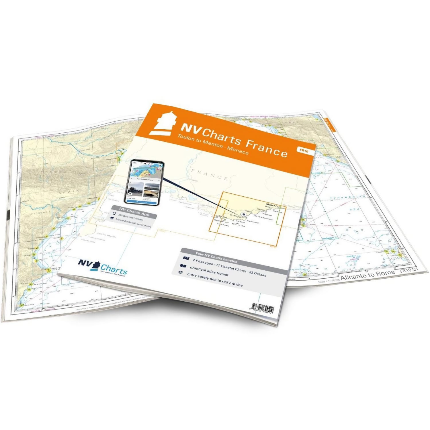 L’Atlas NV Charts FR10 couvre en détail la bande côtière de Toulon à Menton, en passant par Monaco. Ce pack comprend 2 cartes générales (échelles 1:1 750 000 et 1:350 000), 11 cartes côtières (1:150 000) et 32 cartes de détails (de 1:30 000 à 1:6 000 selon les zones portuaires). Le format A3 fermé (A2 ouvert) est conçu pour un usage pratique à bord avec agrafage central plat, facilitant le tracé des routes au crayon. La carte est conforme aux normes en vigueur pour les documents de navigation à bord. Elle est accompagnée d’un accès numérique via l’application NV Charts, avec licence de 365 jours. Les données utilisées sont issues de relevés officiels et internes, permettant une précision renforcée notamment en dehors des chenaux balisés. Ce support est destiné aux plaisanciers côtiers ou hauturiers et inclut des instructions de navigation bilingues, des plans de ports papier et numériques, et les tableaux de marées.