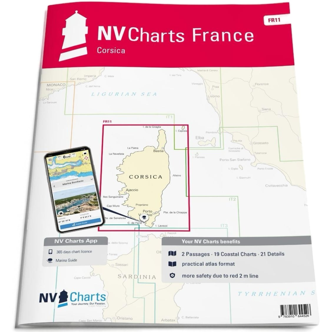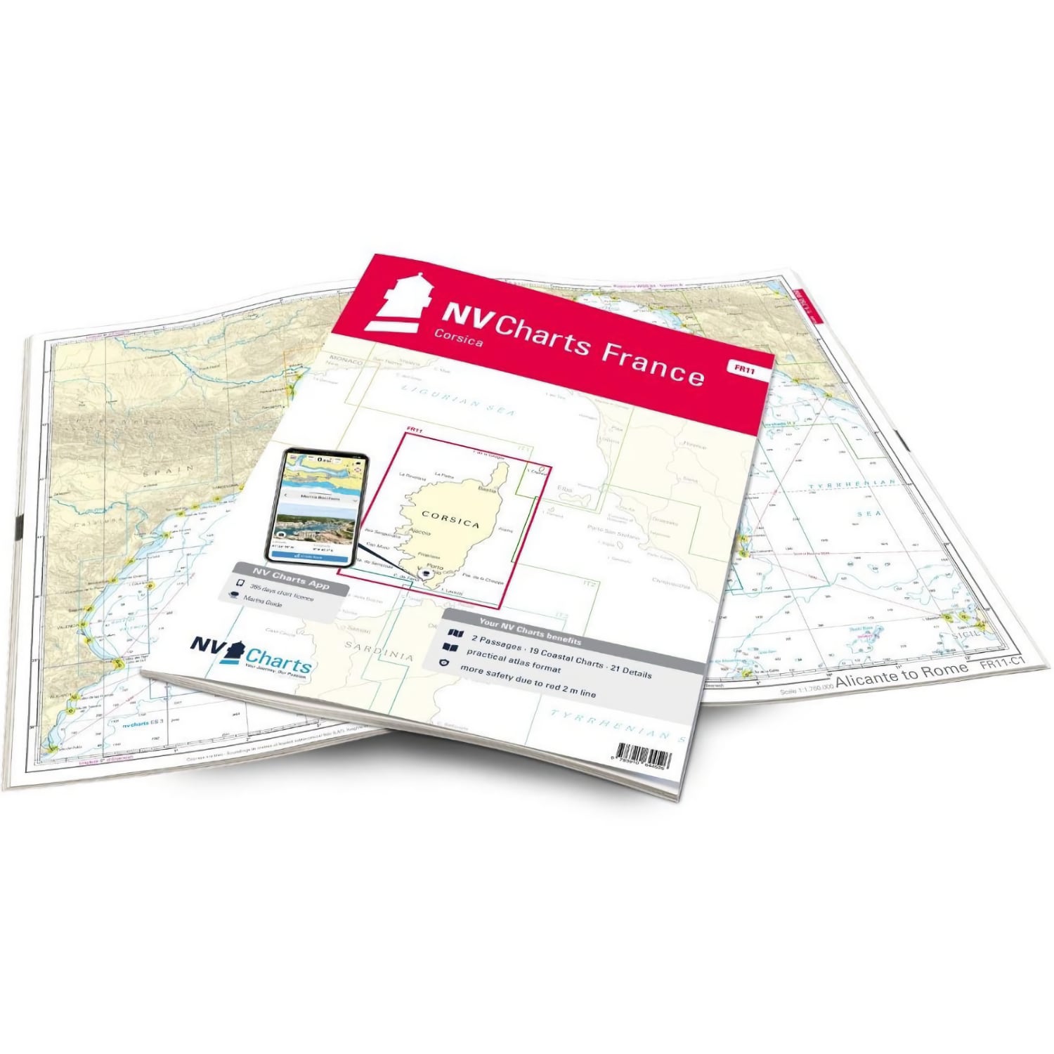 L’Atlas NV Charts FR11 couvre l’ensemble du littoral de la Corse, avec un jeu de cartes papier et un accès numérique à l’application NV Charts pour une durée de 365 jours. Le pack comprend 2 cartes générales (1:1 750 000 et 1:350 000), 19 cartes côtières à moyenne échelle (1:150 000 à 1:60 000) et 21 cartes détaillées pour les approches portuaires (de 1:25 000 à 1:6 000). L’atlas est au format A3 fermé (A2 ouvert) avec une reliure centrale plate. Les données sont issues de levés officiels et internes, pour une précision renforcée en zones côtières. Ce support est conforme aux exigences légales pour la navigation avec cartes papier à bord, et inclut également les plans de ports au format papier et numérique, des instructions bilingues et un tableau des marées.