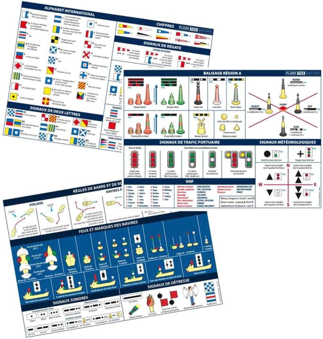 Ce code marin adhésif en A5 pour bateau affiche l'essentiel de la réglementation maritime internationale sur les règles de barre et de route en navigation. Il peut remplacer le document obligatoire (Division 240) sur le RIPAM en navigation. CONFORME D240.