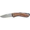 Le couteau Aquaterra à lame simple lisse avec un manche en bois d'olivier d'origine France - platines en fibres d'aramide est destiné aux activités nautiques et outdoor comme la pêche, le kayak, le motonautisme et les loisirs de plein air. Il reprend la même architecture que la version bleu et blanc, avec une lame lisse de 8 cm en acier inoxydable X40Cr13, équivalent 420. Cet acier offre une bonne qualité de coupe et une résistance adaptée à l’environnement marin. Le couteau est pliant et équipé d’un système de blocage de lame pour sécuriser l’utilisation. Le manche est en bois, apportant une prise en main différente tout en conservant un format compact et léger. Le couteau est conçu et fabriqué en France.