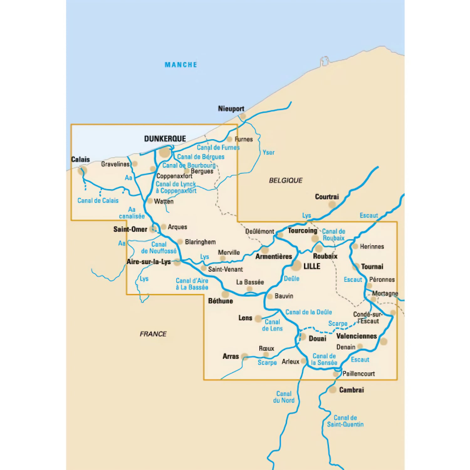 Ce guide couvre près de 500 kilomètres de voies navigables dans les départements du Nord et du Pas-de-Calais. Longtemps utilisées pour le transport de marchandises, ces rivières et canaux restent navigables et bien entretenus. Le guide présente les itinéraires fluviaux suivants : canal de Calais, Aa canalisée, canal de Bergues, canal de Furnes, canal de Bourbourg, liaison Dunkerque-Escaut, Escaut, Lys, canal de Roubaix, canal de l’Espierres et la Scarpe. Format A4 (21 x 29,7 cm), avec cartographie détaillée en couleur à l’échelle 1/50 000 pour les canaux et 1/25 000 pour les rivières. Le guide est trilingue (français, anglais, allemand).