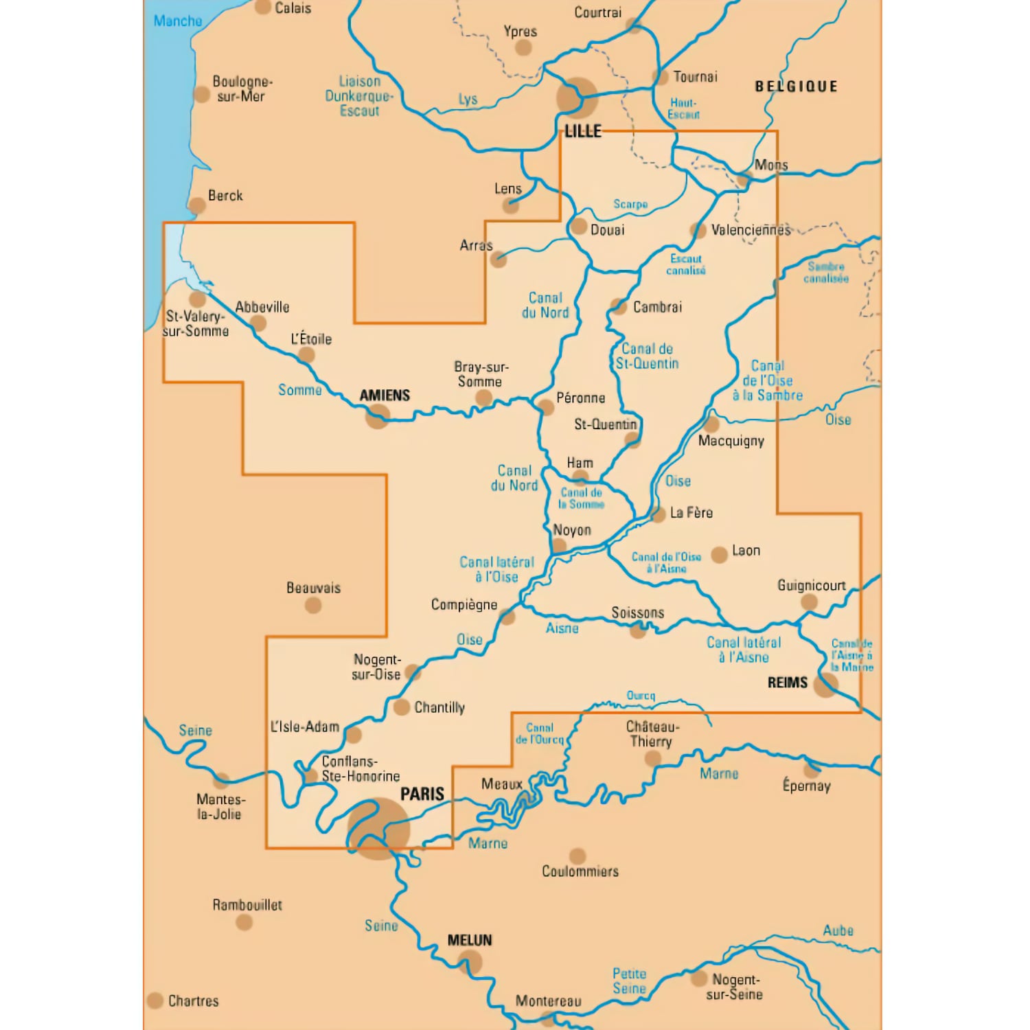 Ce guide couvre les principales voies navigables de la région Picardie : l’Oise, l’Aisne, la Somme et une série de canaux interconnectés (canal de Saint-Quentin, canal du Nord, canal de la Sensée, canal de l’Oise à l’Aisne, canal latéral à l’Oise, canal latéral à l’Aisne, Escaut canalisé et grand gabarit). Le format A4 (21 x 29,7 cm) inclut des cartes détaillées à l’échelle 1/50 000 pour les canaux et 1/25 000 pour les rivières. Ce réseau dense est à la fois un axe logistique actif et un itinéraire alternatif pour les plaisanciers reliant Paris à la Belgique ou à la vallée de la Marne sans passer par la capitale.