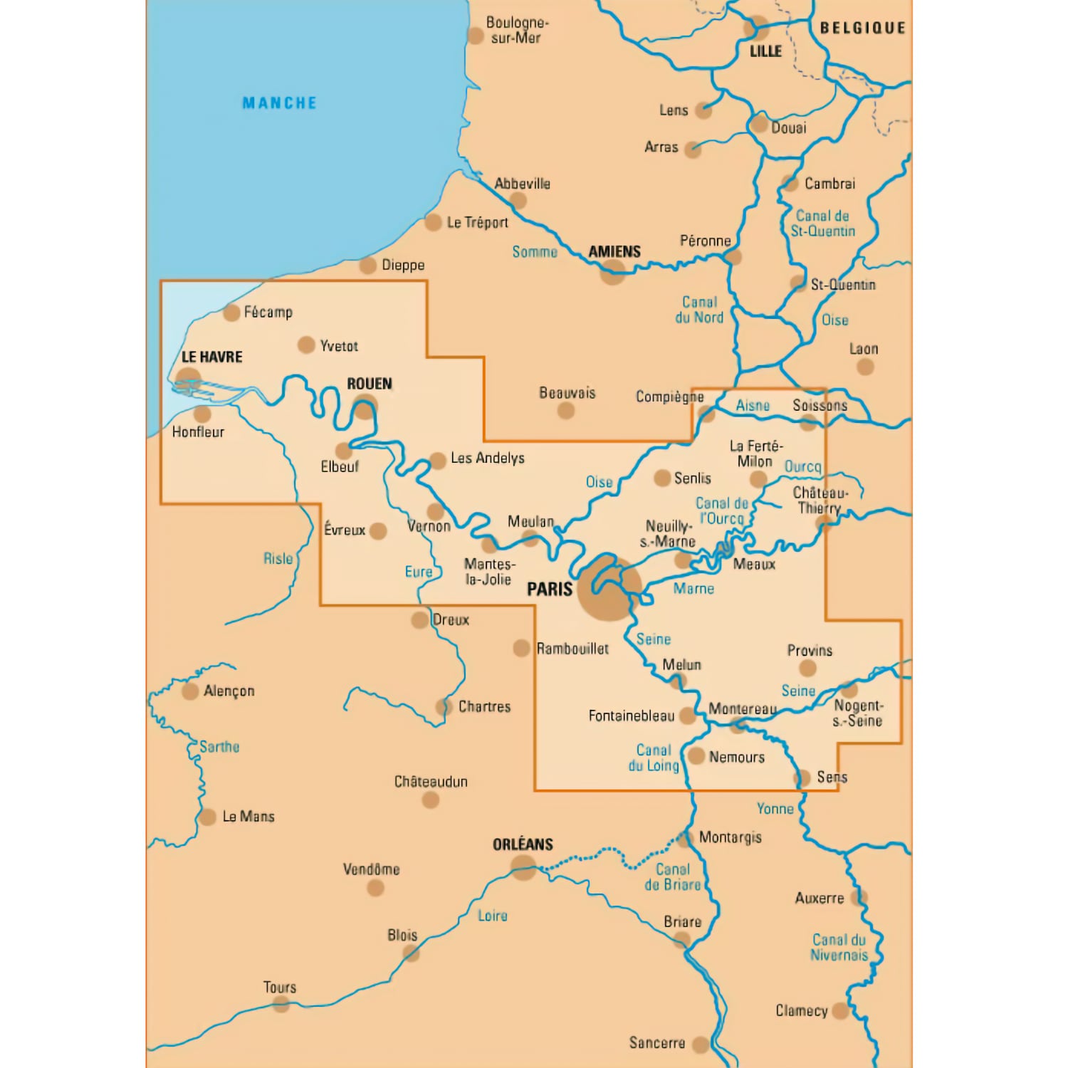 Ce guide couvre le fleuve Seine depuis l’estuaire maritime jusqu’à l’amont, en incluant la traversée de Paris et les canaux urbains (canal Saint-Denis, canal Saint-Martin, canal de l’Ourcq). Il présente l’ensemble des sections navigables : la Seine maritime, la Seine aval, la Petite Seine, la Seine amont. Il détaille les infrastructures majeures : barrages à aiguilles, chenal creusé pour le trafic moderne, écluses à grand gabarit, ponts avec arches navigables. Le guide fournit des cartes en couleur, des données techniques et nautiques récentes, ainsi que des repères historiques pour chaque tronçon.