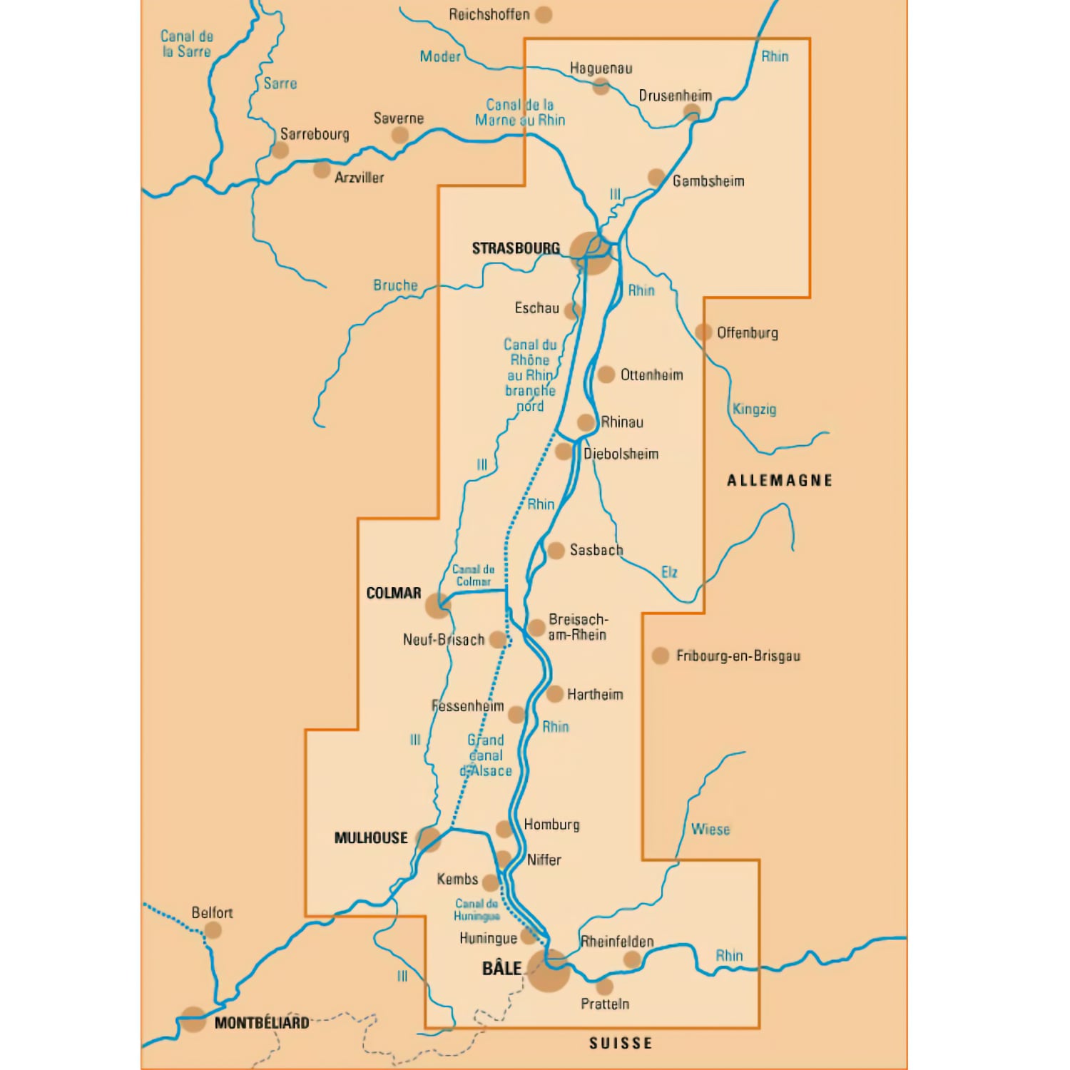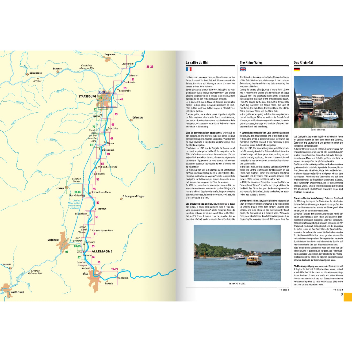 Ce guide couvre la section navigable du Rhin supérieur, le Grand Canal d’Alsace, le Haut‑Rhin, le canal de Colmar, le canal de Huningue et la branche nord du canal du Rhône au Rhin. Le parcours décrit dans le guide s’adresse à des bateaux d’une puissance suffisante, compte tenu des contraintes hydrauliques et de navigation, et implique le respect de la réglementation en vigueur. Le livre présente des cartes en couleur, une cartographie uniforme orientée nord/sud, des informations techniques précises (profondeur, gabarit, balisage, écluses, barrages, accès aux ports), ainsi que des repères utiles à la navigation.