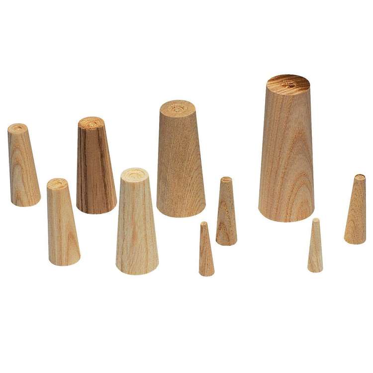 Ce lot comprend 9 pinoches en bois de résineux, réparties en 5 tailles différentes pour couvrir une large gamme de diamètres. Chaque pinoche présente une forme conique permettant une insertion rapide dans un orifice de diamètre variable. Les dimensions vont de 40 à 80 mm de hauteur, avec des diamètres progressifs de 4 à 35 mm. Ces pinoches sont conçues pour gonfler au contact de l’eau, ce qui améliore l’étanchéité une fois en place. L’ensemble est pensé pour répondre aux exigences de sécurité à bord, avec des cônes adaptés à tous types de passe-coques, vannes ou canalisations.