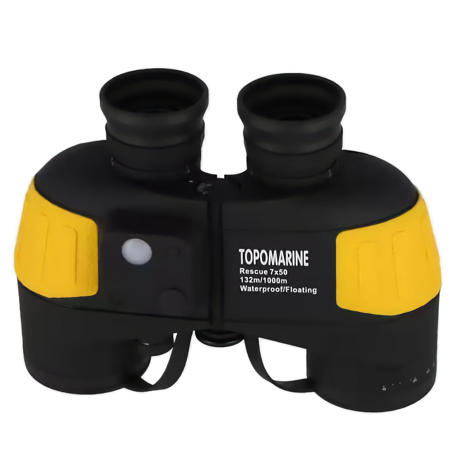 Les jumelles Rescue 7x50 de Topomarine sont conçues pour les conditions de navigation exigeantes. L’optique de 50 mm avec traitement multicouche assure une vision claire et contrastée, même en faible luminosité. Le grossissement x7 est adapté à un usage en mer, sans déformation ni instabilité de l’image. Chaque oculaire se règle indépendamment, pour une mise au point précise. Étanches à l’immersion, ces jumelles flottent grâce à un remplissage à gaz inerte. L’armature métallique est recouverte d’un revêtement antichoc en caoutchouc, assurant robustesse et confort de prise en main. Le prisme BAK-4 en baryum augmente la luminosité de 30 % par rapport aux modèles standards. Un compas de relèvement intégré, à amortissement liquide, affiche une rose graduée degré par degré avec éclairage.