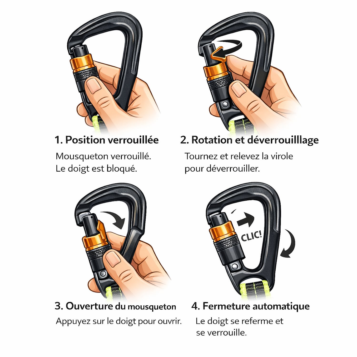 Cette longe s’utilise avec un gilet de sauvetage ou un harnais équipé d’un point d’accrochage adapté. Elle permet de rester relié au bateau lors des déplacements sur le pont, notamment lors des changements de bord ou par mer formée. Le mousqueton Twist Lock en aluminium offre un bon compromis entre légèreté et résistance, tout en restant simple à manipuler avec une seule main. La sangle élastique réduit l’encombrement et limite la longueur libre, ce qui améliore la liberté de mouvement tout en maintenant une liaison courte avec le point d’ancrage. La conformité ISO 12401 garantit que la longe répond aux exigences de résistance et de sécurité attendues pour un équipement de protection individuelle en navigation de plaisance.