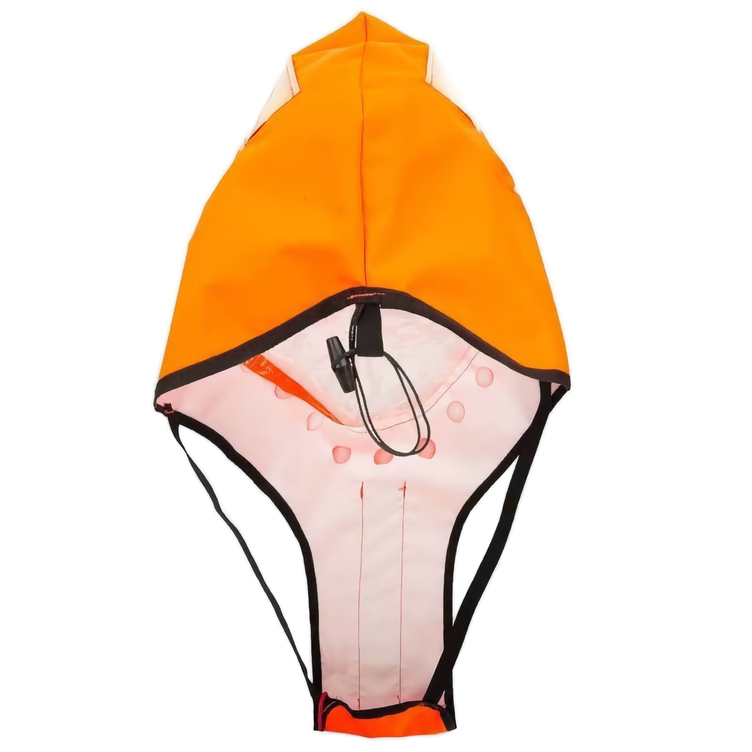 Ce masque anti-embruns, aussi appelé sprayhood, est conçu pour limiter l’exposition aux vagues et projections salines en cas de chute à la mer. Il se déploie rapidement et se fixe facilement sur les gilets de sauvetage Plastimo compatibles. Sa forme en Y laisse accessibles les équipements de signalisation comme les balises ou les flashlights. Le tissu orange fluorescent et les bandes réfléchissantes situées sur la tête et le buste améliorent le repérage visuel par faible luminosité ou mauvaise météo. Le masque est conforme à la norme ISO 12402-8. Il est livré dans une pochette ceinture avec fermeture velcro pour un déploiement immédiat.