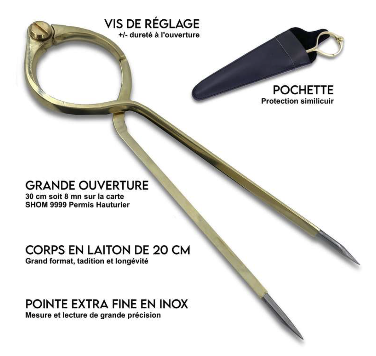 • Compas pointe sèche droit en laiton de 20 cm : Compas en laiton pour l'esthétique avec des pointes inox fines pour la précision de la mesure.