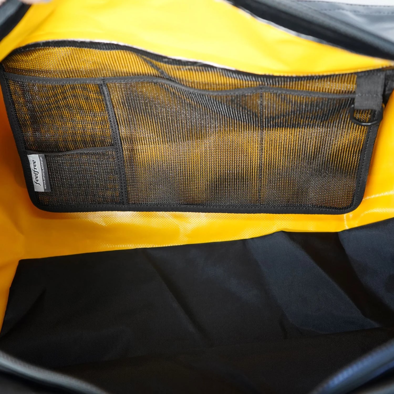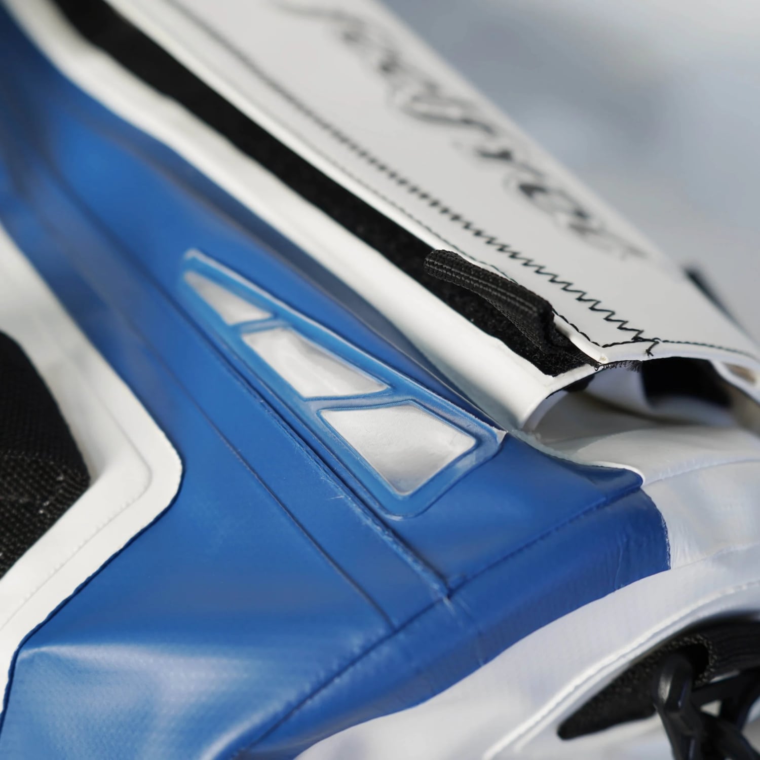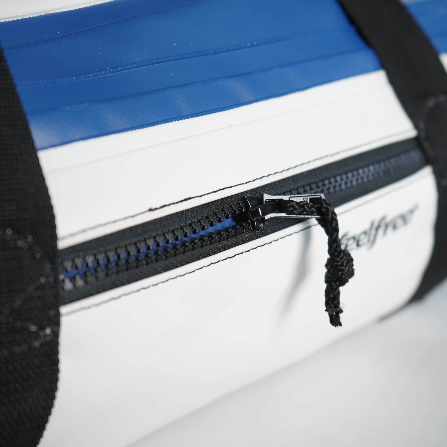 Le sac bateau étanche New Clipper de Feelfree est conçu pour un usage nautique régulier en environnement humide. Il est fabriqué en bâche Tarpaulin quadri fibrée de 0,7 millimètre, un matériau utilisé pour les boudins de bateaux semi rigides. Cette conception apporte une résistance élevée à l’abrasion, aux UV et aux contraintes liées à l’eau salée. Le système de fermeture semi étanche repose sur un double zip protégé par un rabat à velcro, limitant les entrées d’eau lors des projections et des embruns. Le sac est proposé en plusieurs volumes, 15, 40, 60 et 80 litres, afin de s’adapter aux besoins d’une sortie à la journée comme à un programme plus chargé. Les soudures haute fréquence remplacent les coutures classiques et assurent une étanchéité durable. Le fond renforcé améliore la tenue du sac lorsqu’il est posé sur un pont ou un sol humide. L’intérieur comprend une poche zippée et une poche filet à compartiments pour organiser les affaires sèches et humides.