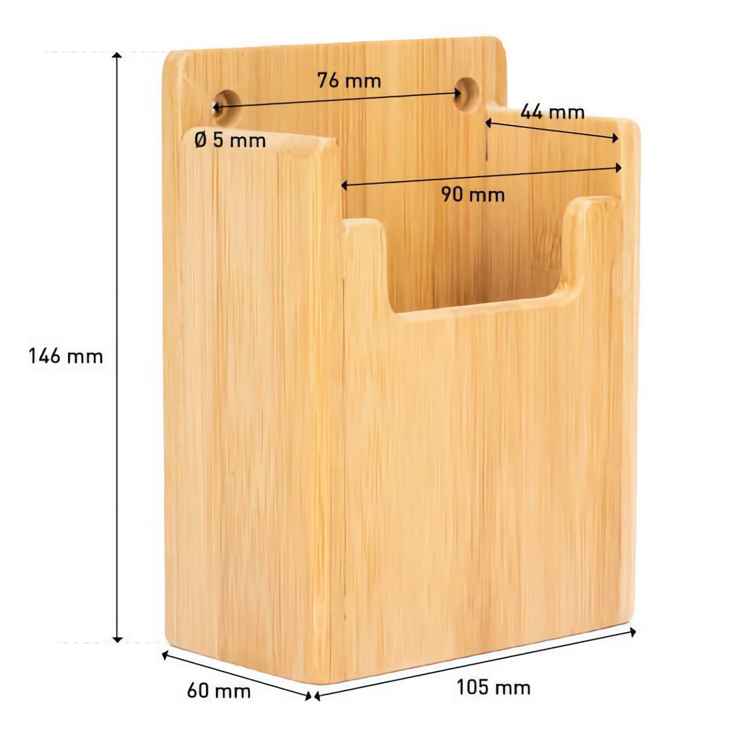 Ce support s’adresse à tous les utilisateurs de bateaux, qu’ils soient plaisanciers, pêcheurs ou marins professionnels, souhaitant garder leurs équipements bien organisés. Sa finition en bambou teinté couleur miel s’intègre harmonieusement dans les aménagements intérieurs de cabine, offrant un rendu soigné et naturel. Installé en poste fixe, il maintient les appareils à portée de main tout en les protégeant des chocs et des glissements causés par les mouvements du bateau. Le bambou imputrescible et la structure lamellée-collée garantissent une solidité durable, même dans un environnement marin exposé à l’humidité. L’ouverture prévue pour le câble de chargement facilite l’entretien et permet de garder les appareils toujours prêts à l’emploi.