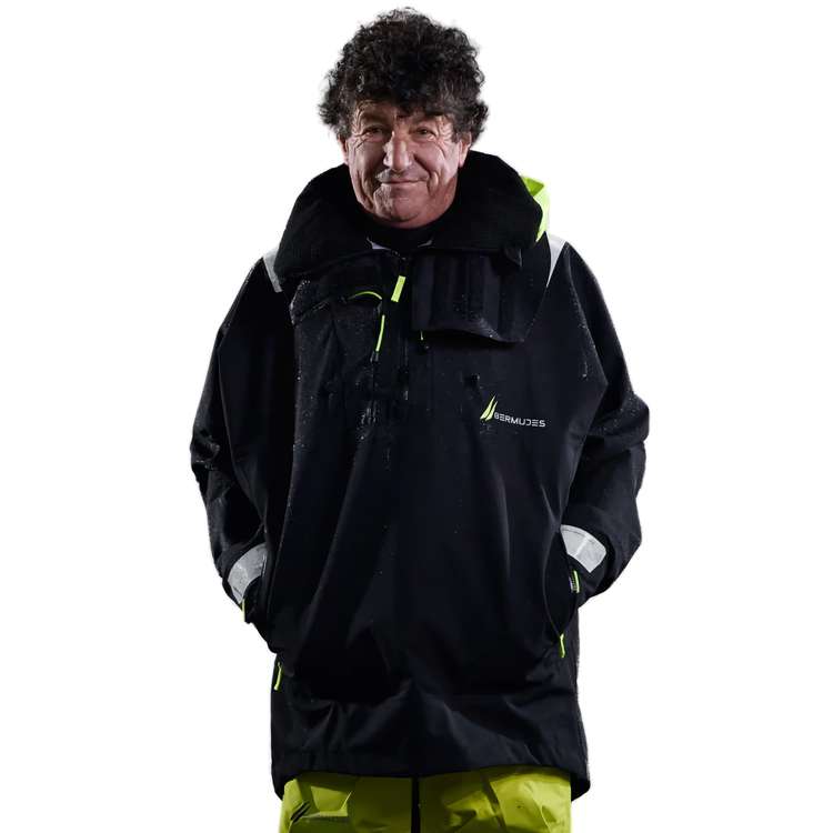 Cette vareuse de quart est conçue pour la navigation hauturière et les quarts prolongés en mer. Elle utilise une matière trois couches en polyester recyclé, issu de bouteilles plastiques. Le tissu associe imperméabilité et respirabilité avec des performances annoncées à 20000 mm pour l’imperméabilité et 20000 pour la respirabilité. Un traitement déperlant DWR limite l’absorption de l’eau et retarde la saturation du tissu. Les coutures étanches et les zips étanches sont complétés par un col intérieur, des manchons et un bas de veste en néoprène afin de limiter les entrées d’eau. La matière coupe le vent et reste adaptée à un port prolongé en environnement humide et exposé.